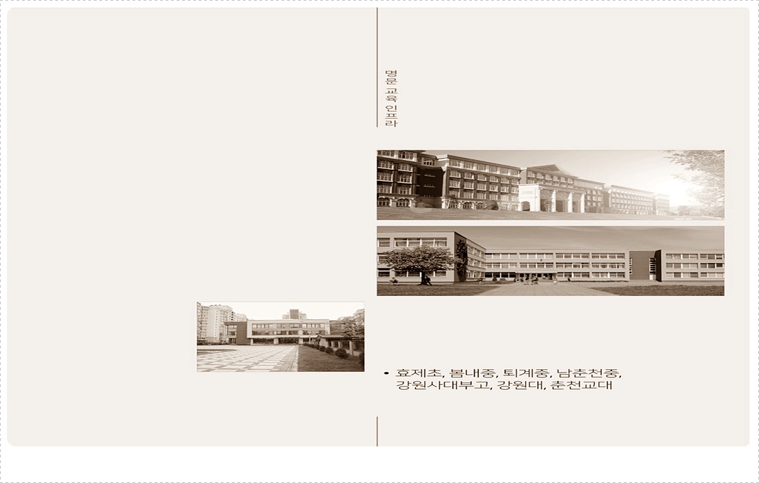 춘천 하우스디 시그니처 98 이번(이番)에는 학(學)세권(卷)을 살펴보겠습니다. 춘천교대부설초(春川敎大附設初)와 효제초, 봄내중(中), 강원대학교 등(等) 여러 학교(學校)가 단(單)/지 주변(周邊)에 형성(形成)되어 있으며 춘천교대(春川敎大)와 강원사대부(江原士大夫)설고 등(等)이 근거리(近距離)에 자리하여 넉넉한 교육(敎育) 환경(環境)을 누릴 수 있겠습니다.?또 학원가(學院街)가 밀집(密集)한 퇴계동이 인접(隣接)하여 자녀(子女)와 이주(移住)를 생각하는 학부모(學父母) 소비자(消費者)에게도 알맞은 상품(商品)이라 판단(判斷)됩니다. 다음은 일상(日常) 인프라인데요. 당(黨) 현장(現場) 근처(近處)에는 다채(多彩)로운 편의시설(便宜施設)이 마련된 모습이므로 일상(日常)의 편리(便利)함이 예상(豫想)됩니다.? 춘천 하우스디 시그니처 98 교육청(敎育廳), 경찰청(警察廳), 춘천지방법원(春川地方法院) 등(等)이 가까워 직주근접(直走近接)을 원(願)하는 직장인(職場人) 수요(需要)가 넉넉하지 싶습니다. 그밖에 이Mart, 메가박스, 롯데Mart, 홈플러스, CGV 등(等) 쇼핑과 문화(文化) 시설(施設)도 인접(隣接)합니다.?
