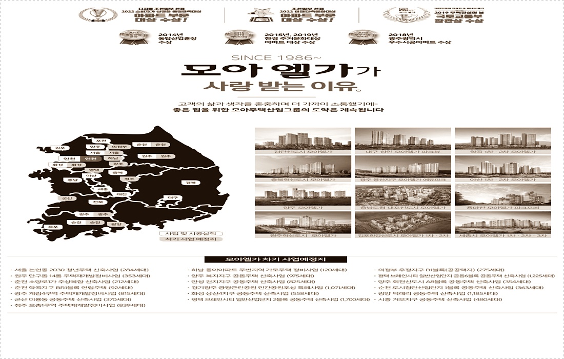 135제곱 미터의 중대형(中大型) 면적(面積)에 총(總) 560세대(世代)를 제공(提供)하게 됩니다.주민공동시설과 community, 근린일상시설(近隣日常施設), 맘스테이션, 주민(住民)cafe 및 펫 cafe 등(等)과 세대당(世帶當) 1.5대(臺)를 수용(受容)할 수 있는 총(總) 852대(代) 범위(範圍)의 주차장(駐車場)도 기획(企劃)합니다. 대한주택보증(大韓住宅保證) 기업평가(企業評價) A등급(等級)의 모아주택산업(住宅産業)이 시행(施行)을 하게 되며 검단(黔丹), 대구(大邱) 상인(商人), 광주(光州) 용산(龍山), 양주(洋酒), 원주혁신(原州革新), 김포한강(金浦漢江), 세종시(世宗市) 등(等)에 제공(提供)된 엘가로 brand 파워까지 기대(期待)하게 됩니다.